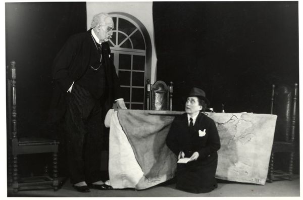 Premierminister Marchanel (Charles Løwaas), en journalist (Elga Falkenberg).
